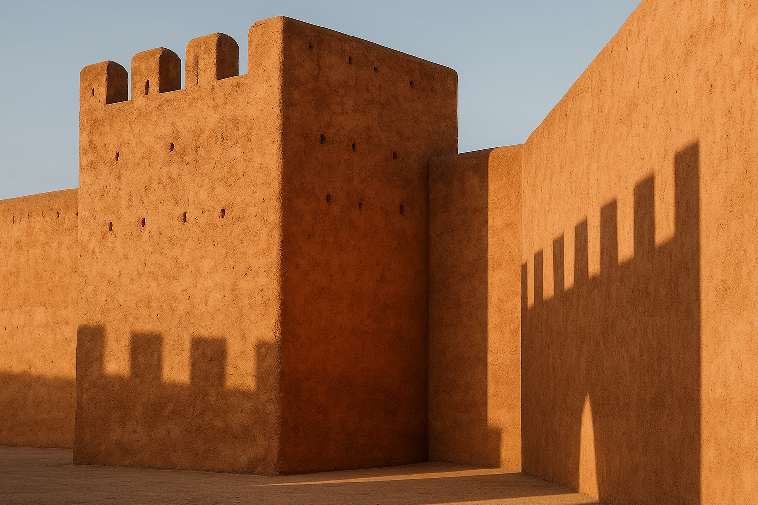 إلى الجدران الحمراء التي استكملها خلفاؤه،